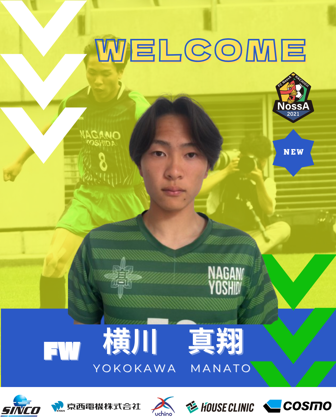 この度、 横川 真翔 選手が、長野吉田高校から加入することになりましたので、お知らせいたします。