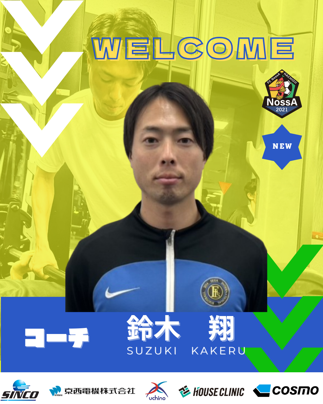 この度、FC NossA八王子のフィジカルコーチとして、鈴木 翔 氏が就任することが決定しましたので、お知らせいたします
